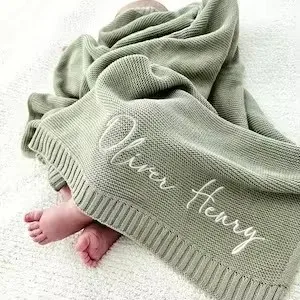 Personalize the blanket with your baby's name and a charming icon – delicately embroidered in your choice of 16 vibrant thread colors for a truly one-of-a-kind piece.