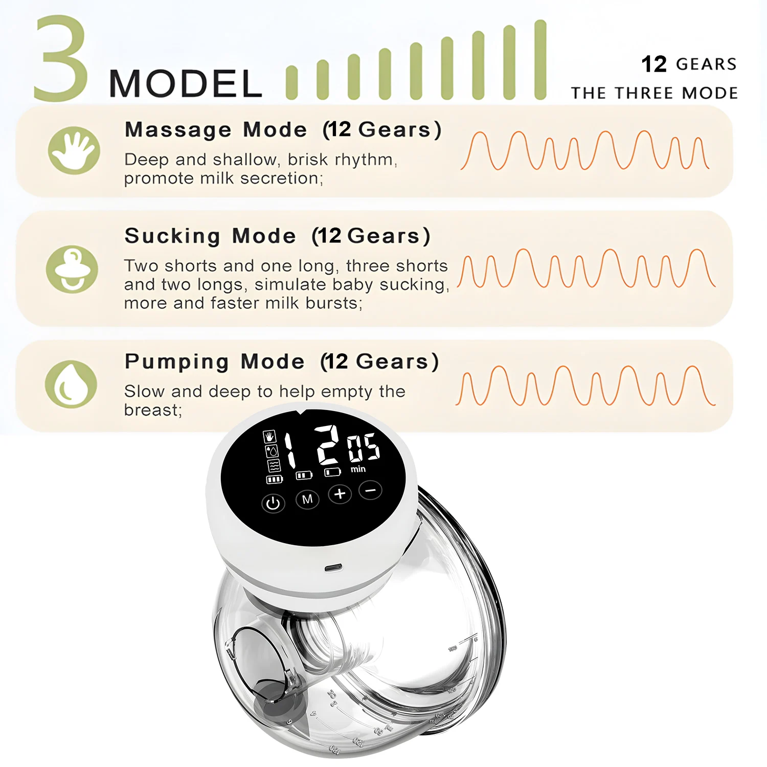 🔄 3 Smart Modes + 9 Suction Levels – Choose from Massage, Expression, or Mixed mode to personalize your pumping session. Adjustable suction (40mmHg–300mmHg) ensures maximum comfort and efficiency.