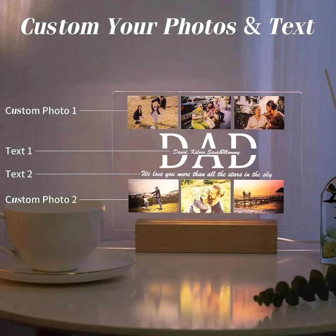 Turn your most treasured memory into a glowing work of art with our Custom Acrylic Photo Night Light – a heartfelt way to show love and appreciation to Mom, Dad, your partner, or anyone close to your heart. Whether it’s a meaningful quote, a cherished photo, or a loving message, this plaque turns everyday moments into forever keepsakes.