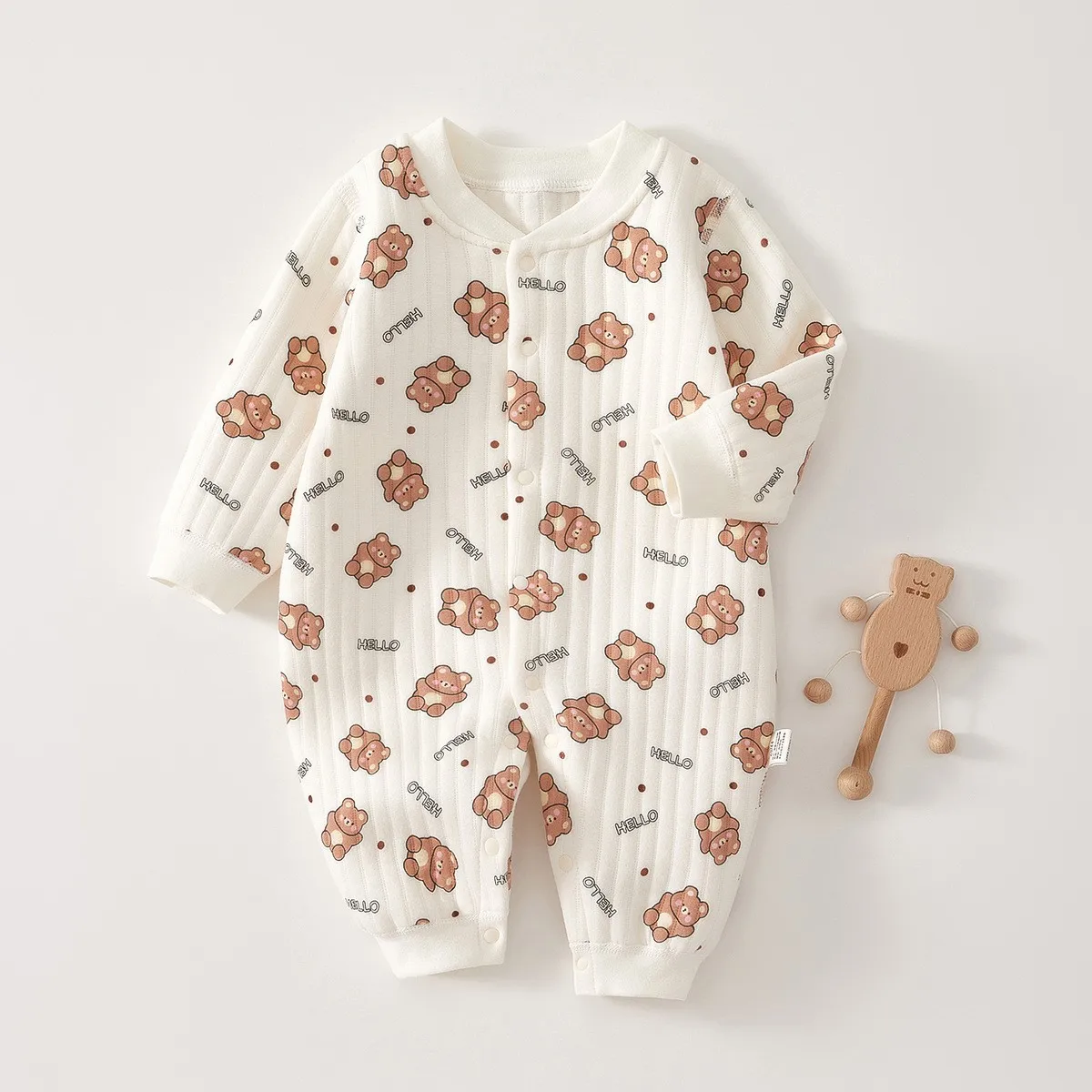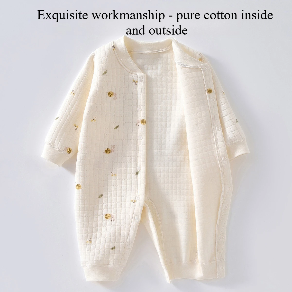 Wrap your little one in cozy comfort with this ultra-soft, warm, and breathable romper. Designed with love for boys and girls, this 3-layer newborn jumpsuit features adorable bear and bunny cartoon prints, boneless stitching, and practical warmth—making it the ideal daily outfit for fall, winter, and all seasons in between.